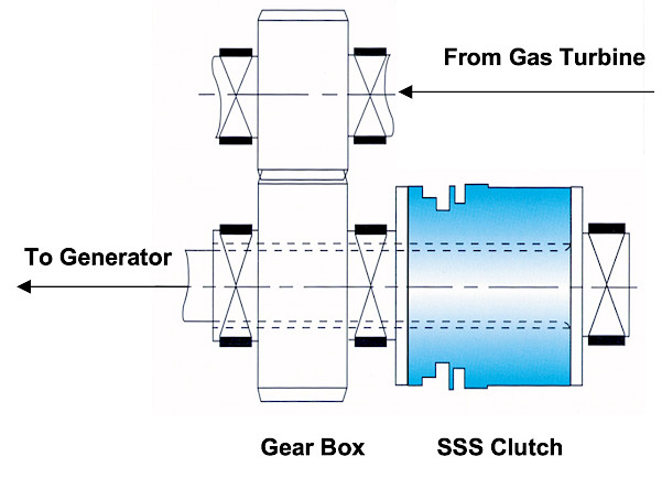 SSSクラッチは、既存のシステムのタービンと発電機の間に追加することができます。減速ギアボックスがある場合でも、多くの場合、タービンや発電機を移動させることなく設置可能です。既存のギアボックスは、SSSクラッチをクイルシャフト方式で組み込んだ新しいユニットに置き換えられます。
